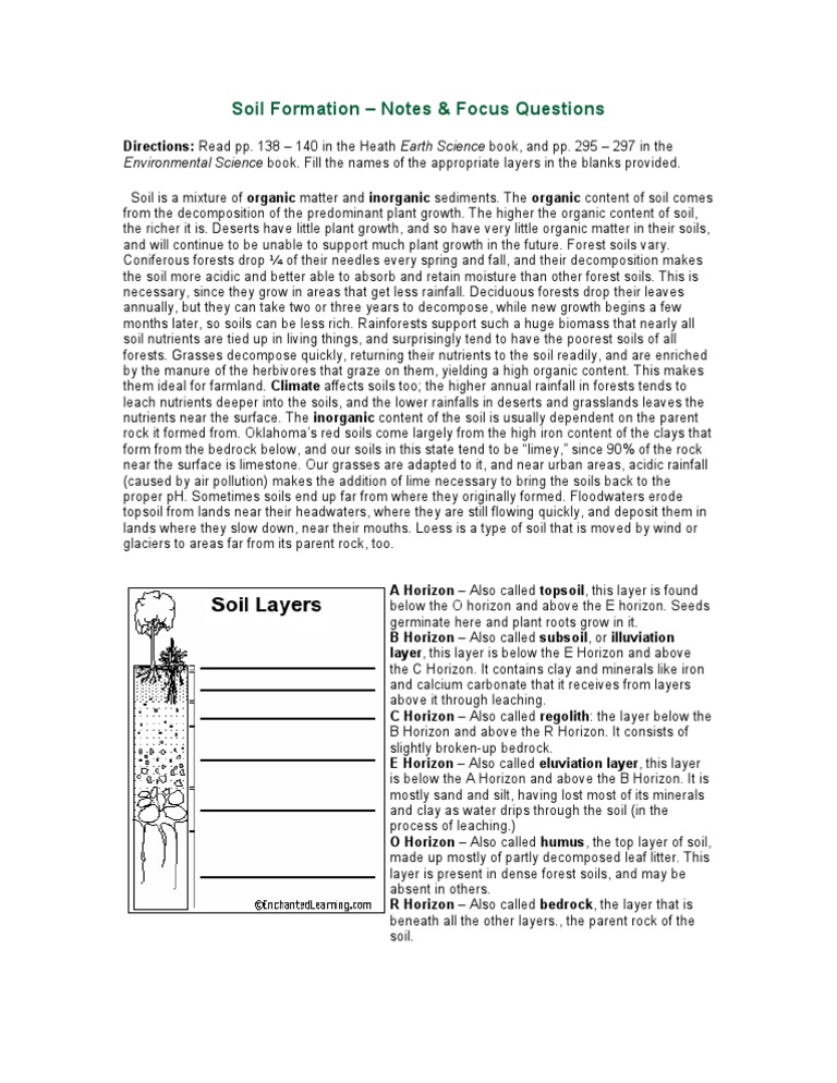 contractors and engineers can have different definitions. Soil formation and soil horizons. Soil formation is a very slow process requiring thousands of years to develop a mature pedon. A worksheet can be equipped for any subject. Read the text and answer the questions that introduction soil formation (creation) takes many years, and many things affect a soil as it forms.